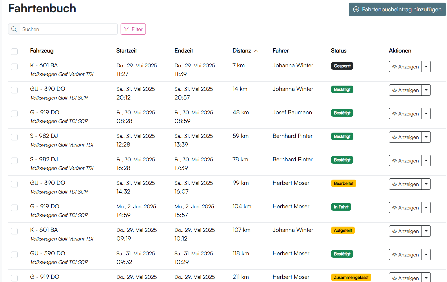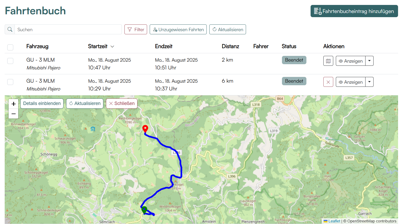 Die digitale Flottensteuerung, als zentraler Bestandteil des digitalen Fuhrparkmanagements, umfasst das digitale Fahrtenbuch zur lückenlosen Erfassung aller Fahrstrecken sowie ein detailliertes Berichtswesen für Auswertungen zu Fahrzeugnutzung, Laufleistungen und Betriebskosten.